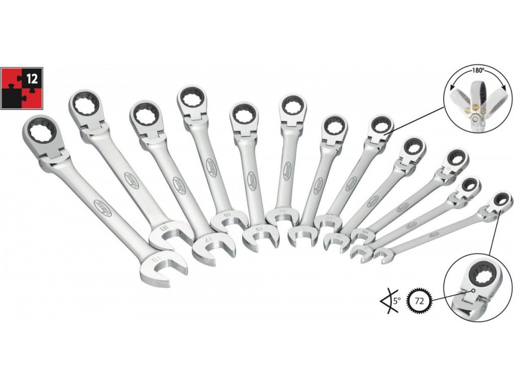 Sada kloubových ráčnových očkoplochých klíčů, 12 ks.