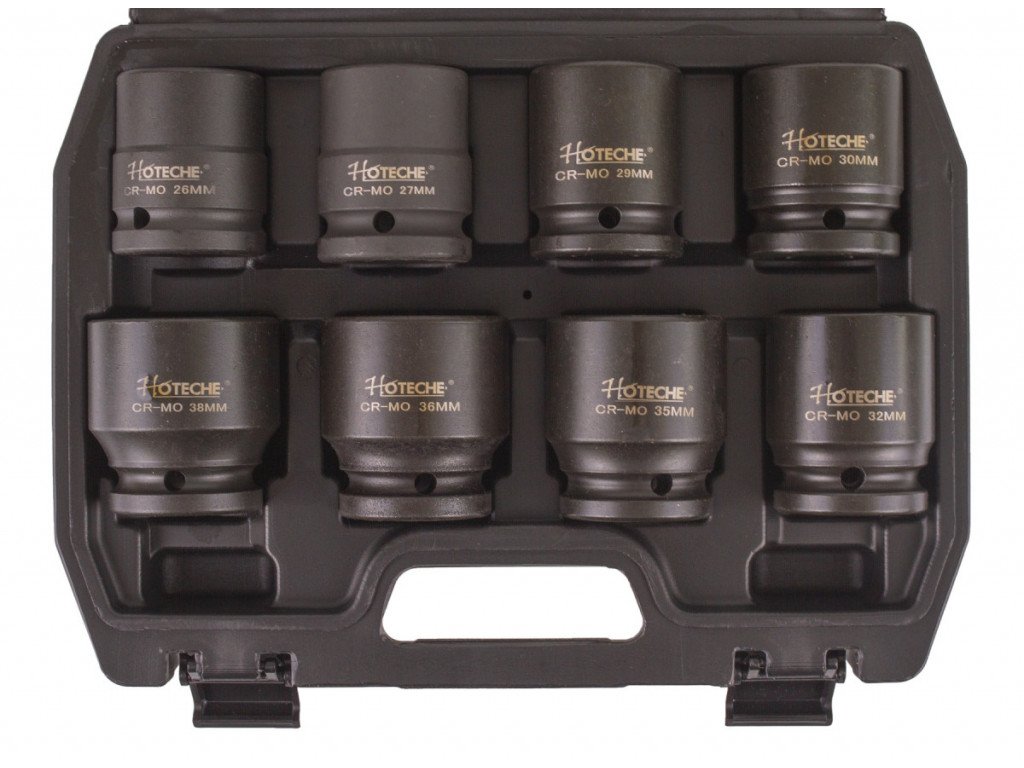 Sada v plastovém boxu obsahuje klíče o rozměrech: 26, 27, 29, 30, 32, 35, 36 a 38 mm.