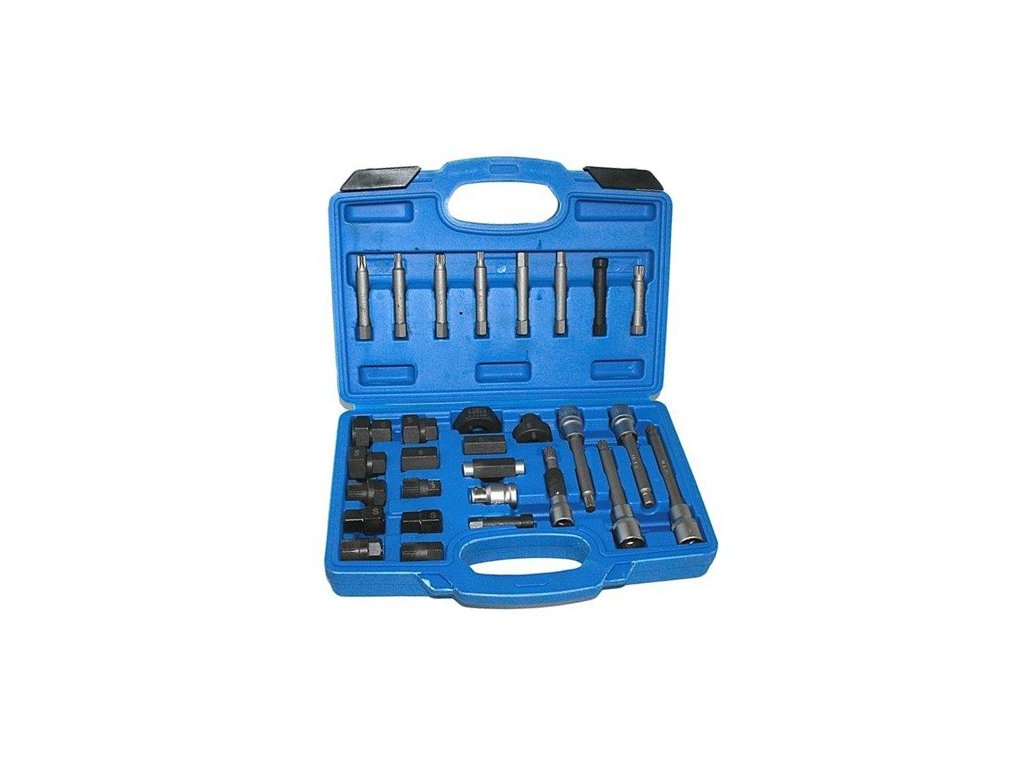 Sada 30 ks klíčů, adaptérů a hlavic pro montáž a demontáž alternátorů: