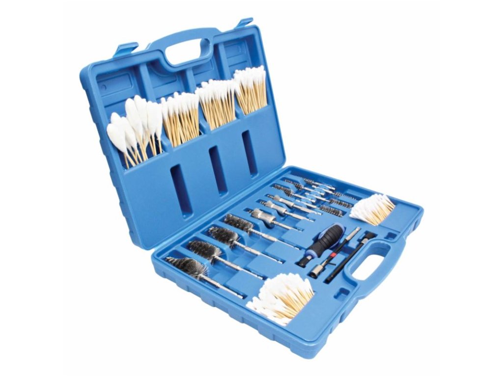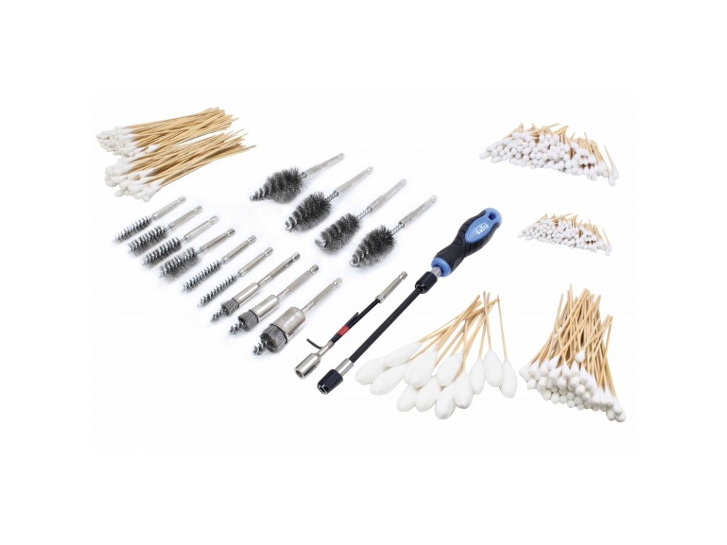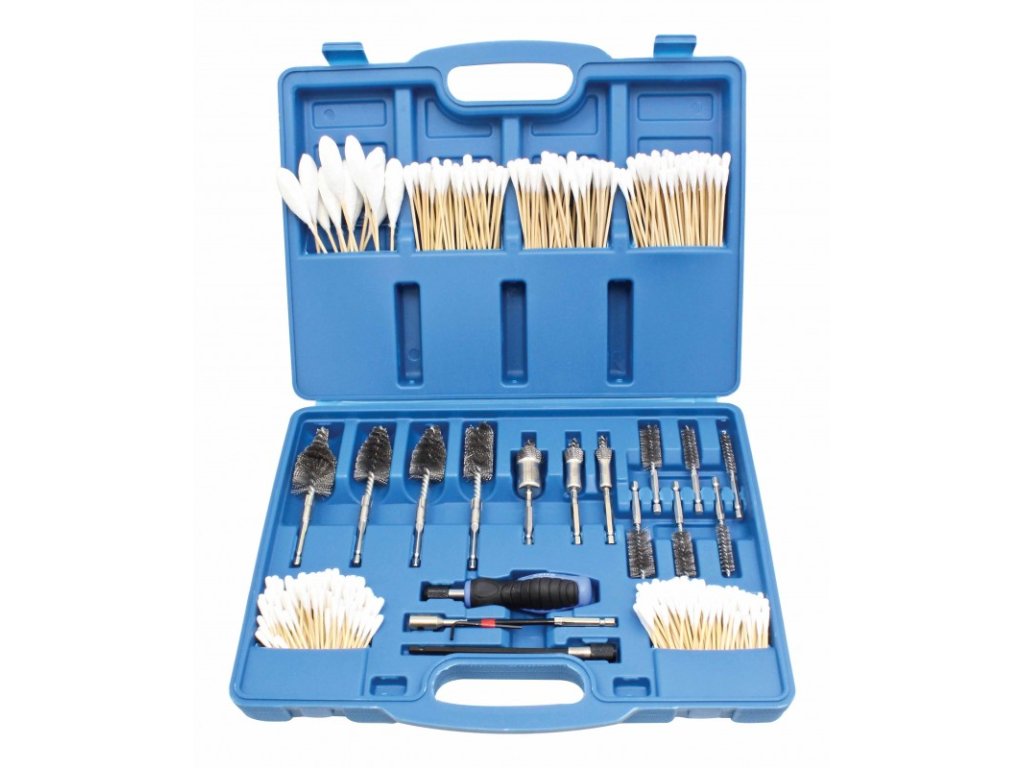 Sada drátěných kartáčů, vatových tyčinek na čištění sedel vstřikovačů u dieselových motorů.