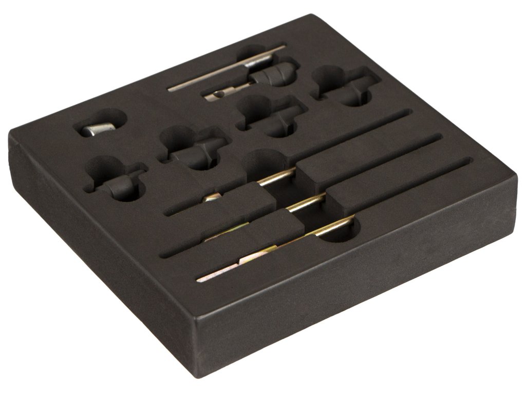 Sada přípravků/výstružníků a vodicích pouzder na sedla žhavicích svíček.