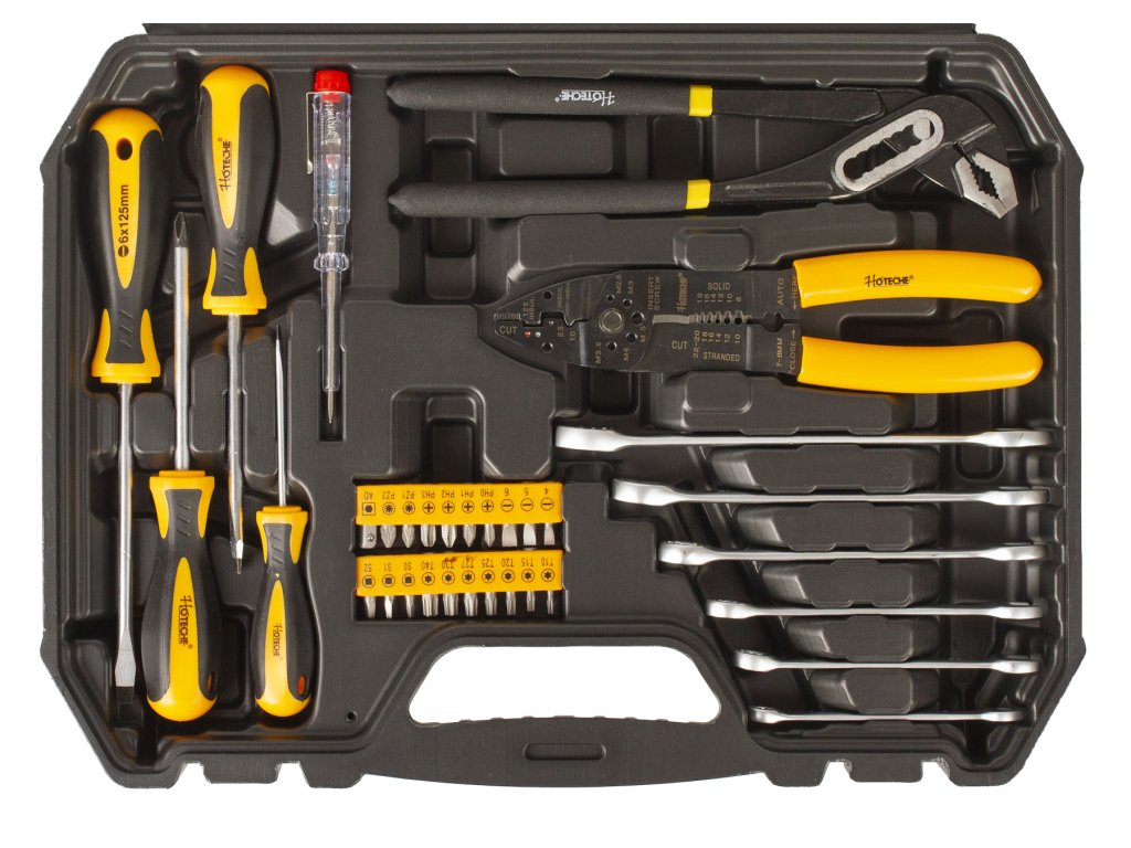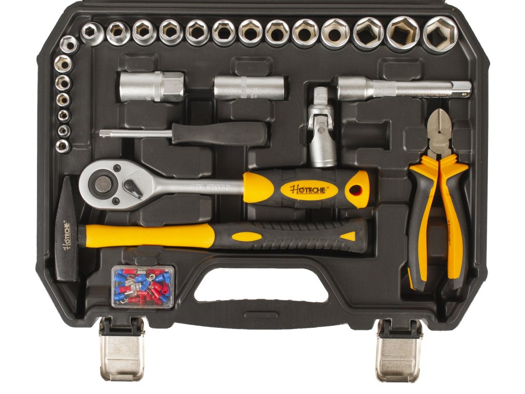 Sada základního nářadí s golou a nástrčnými klíči 1/2" a 1/4" od značky Hoteche by neměla chybět v žádné domácnosti.