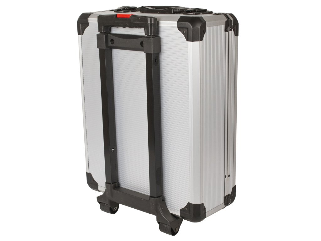 - Kufřík je vybaven teleskopickým madlem a kolečky, díky kterým je manipulace se sadou velice snadná.