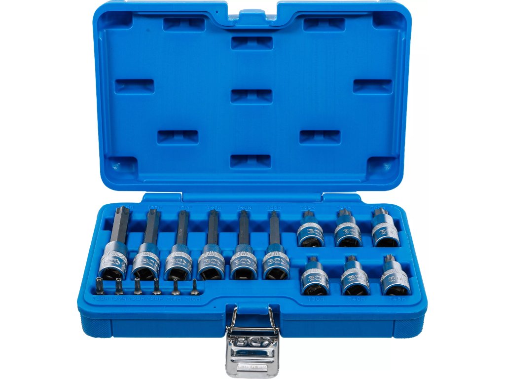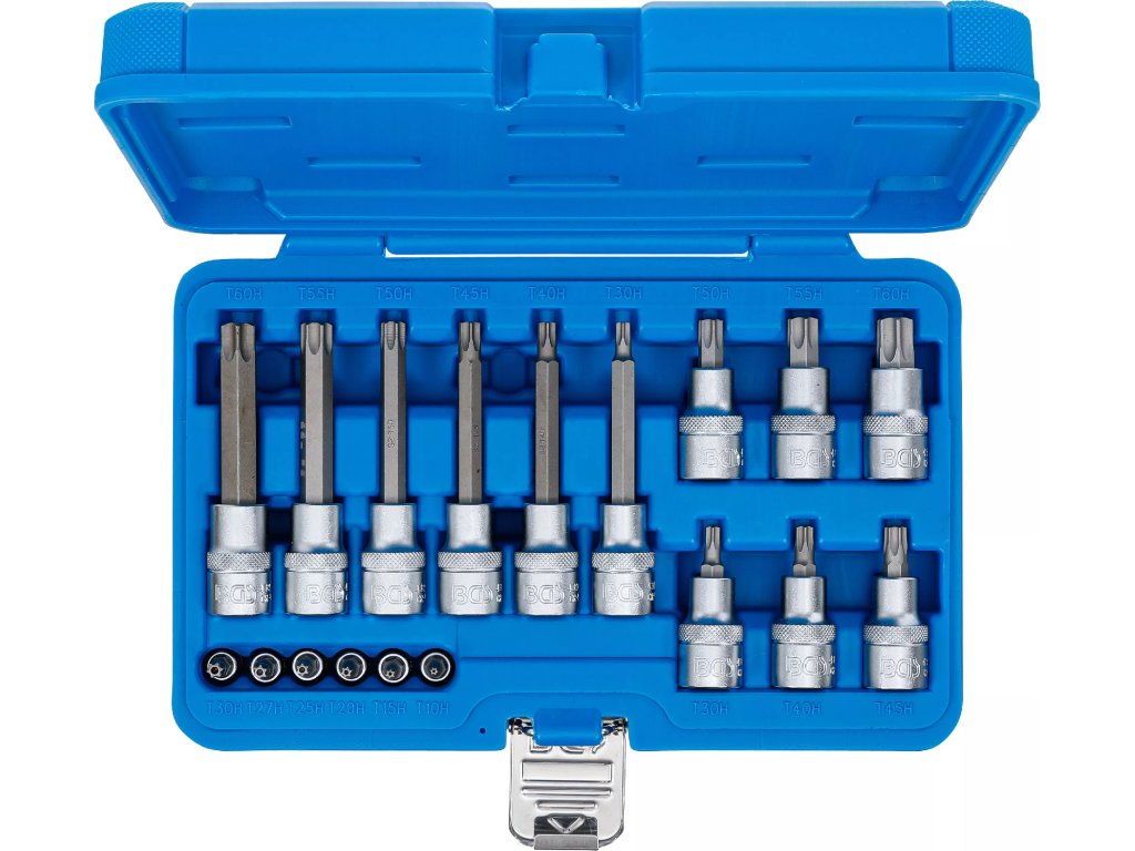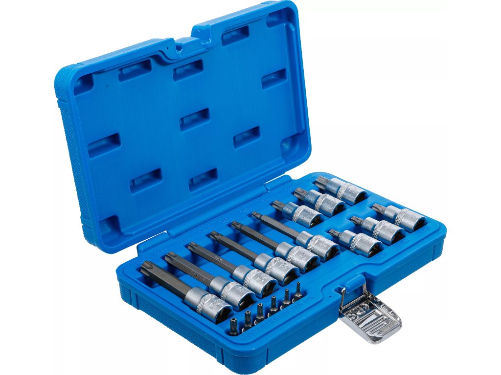 Sada nástrčných hlavic s bity Torx, 1/4", 1/2", T10H-T60H, 18 ks - B5174