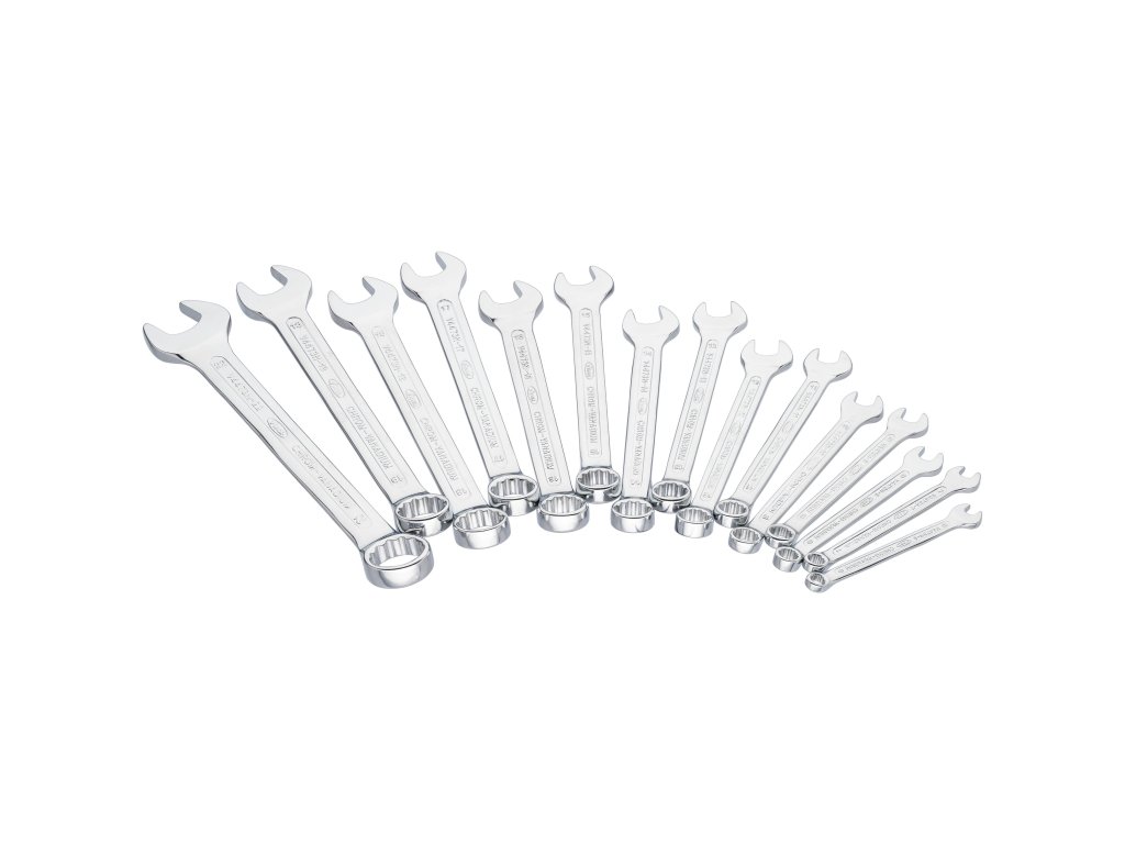 Sada očkoplochých klíčů v dlouhém provedení s matně pochromovanou úpravou.