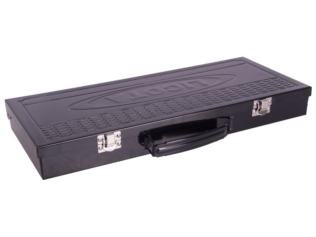 Profesionální sada 16 ks očkoplochých klíčů značky LICOTA je uložena v robustním plechovém kufříku s černým lakováním.