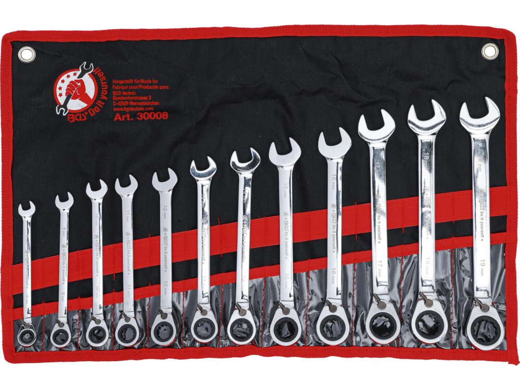 Sada očkoplochých ráčnových klíčů, 8 - 19 mm, 12 ks - BGS 30008