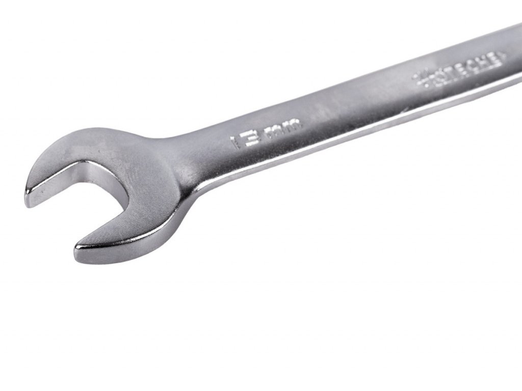 Z jedné strany se jedná o klasický stranový klíč a z druhé strany můžete využívat očkový klíč s dvanáctihranným profilem vybavený ráčnou.