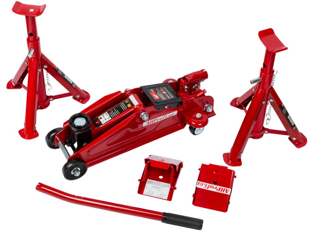 Sada pojízdného zvedáku, stavitelných podpěr a bezpečnostních klínů, nosnost 2t