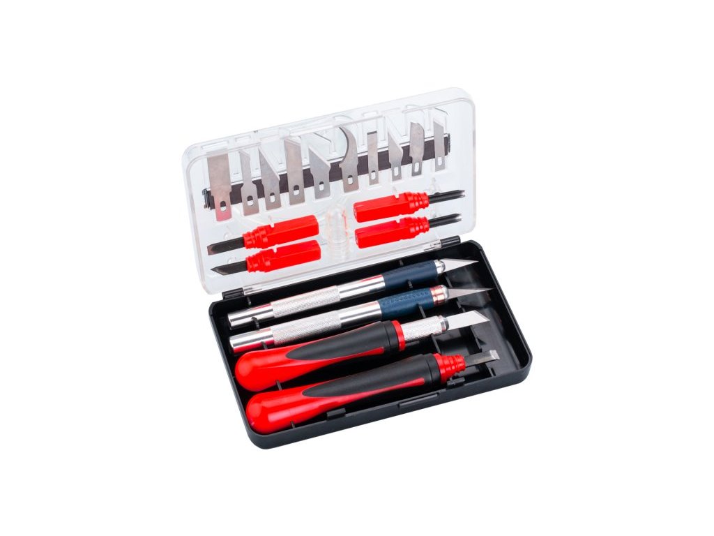 - sada sklapelů / nožů různých tvarů pro široké spektrum využití - modelářství, řezbářství, tvoření dekorací, precizní vyřezávání, apod.