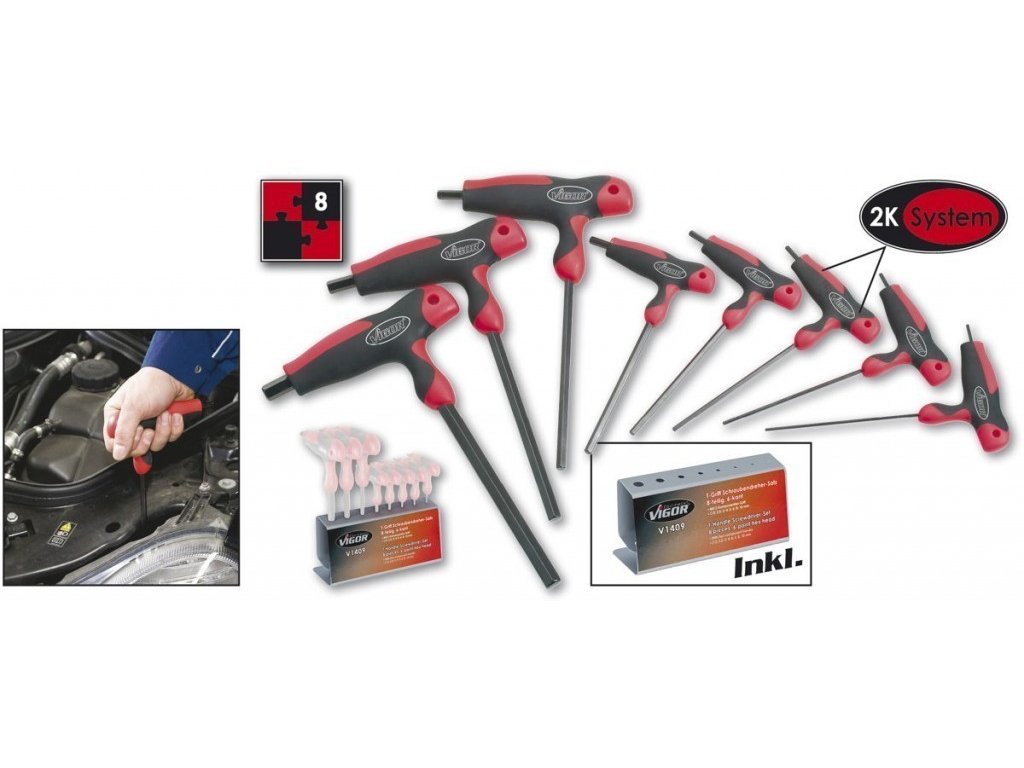 - Sada profesionálních šestihranných šroubováků s T-rukojetí.