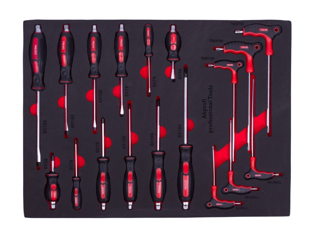 Sada šroubováků v pěnové výplni do dílenských vozíků, 18 dílů - H18005EW3