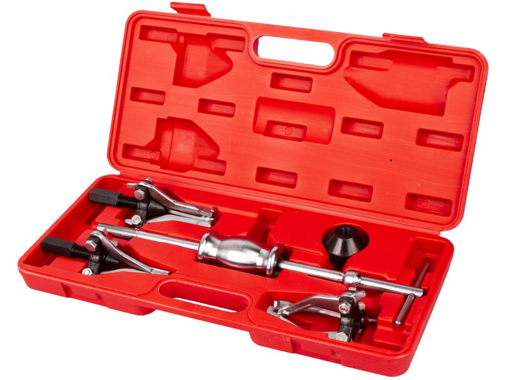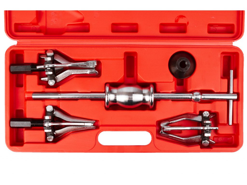 - sada obsahuje: 1 vodící tyč s rukojetí, 1 kladivo, 1 ks 3-čelisťového vnitřního stahováku 15 - 30 mm, 1 ks 3-čelisťového stahováku 30 - 80 mm, 1 ks 3-čelisťového stahováku 15 - 80 mm