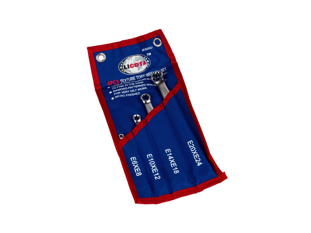 Sada 4 ks kvalitních TORX klíčů, která je přehledně uložena ve srolovatelném pouzdře.