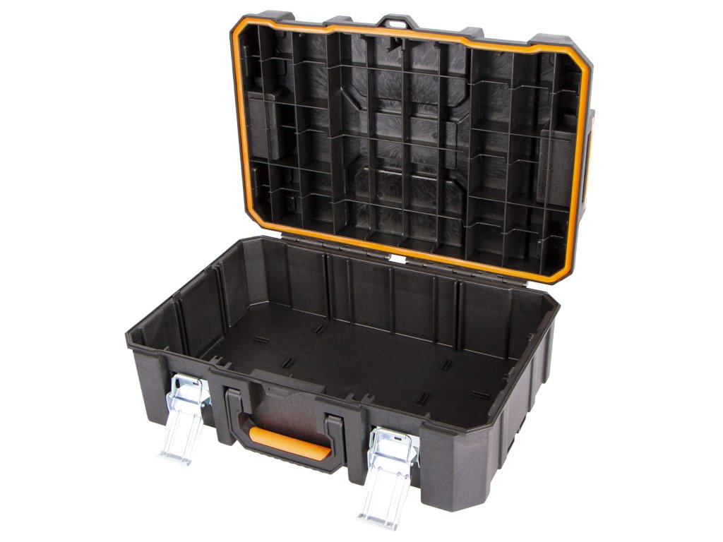 - Velký kufr s kolečky, který má velký úložný prostor a odnímatelnou přepravku pro drobnější nářadí