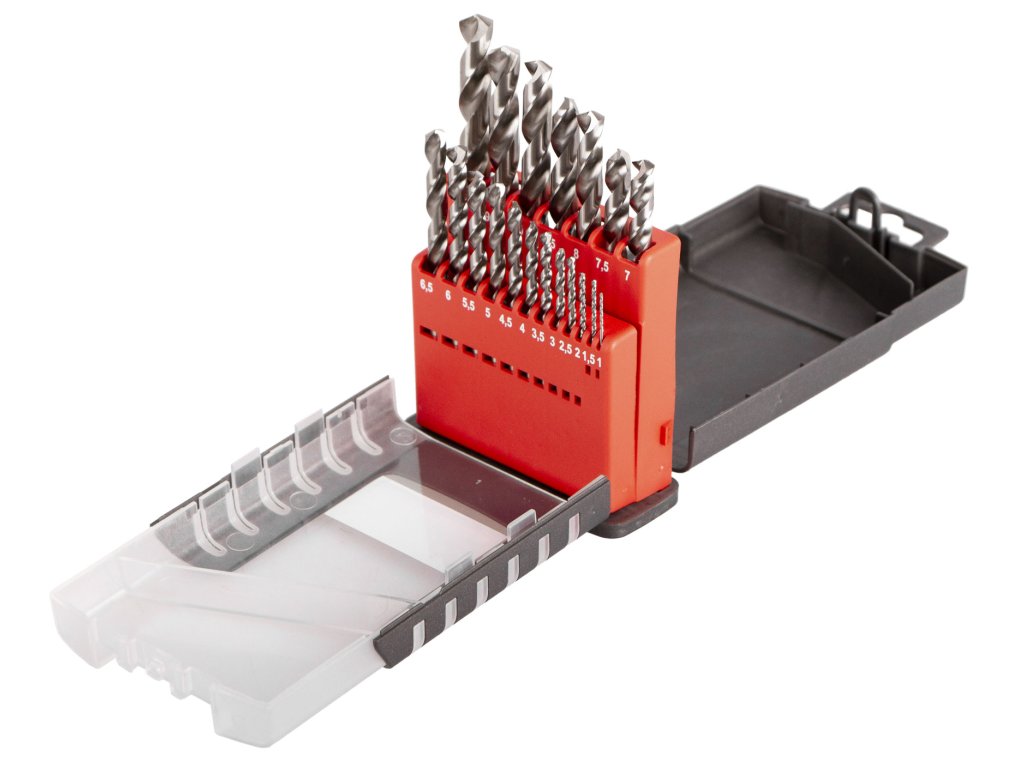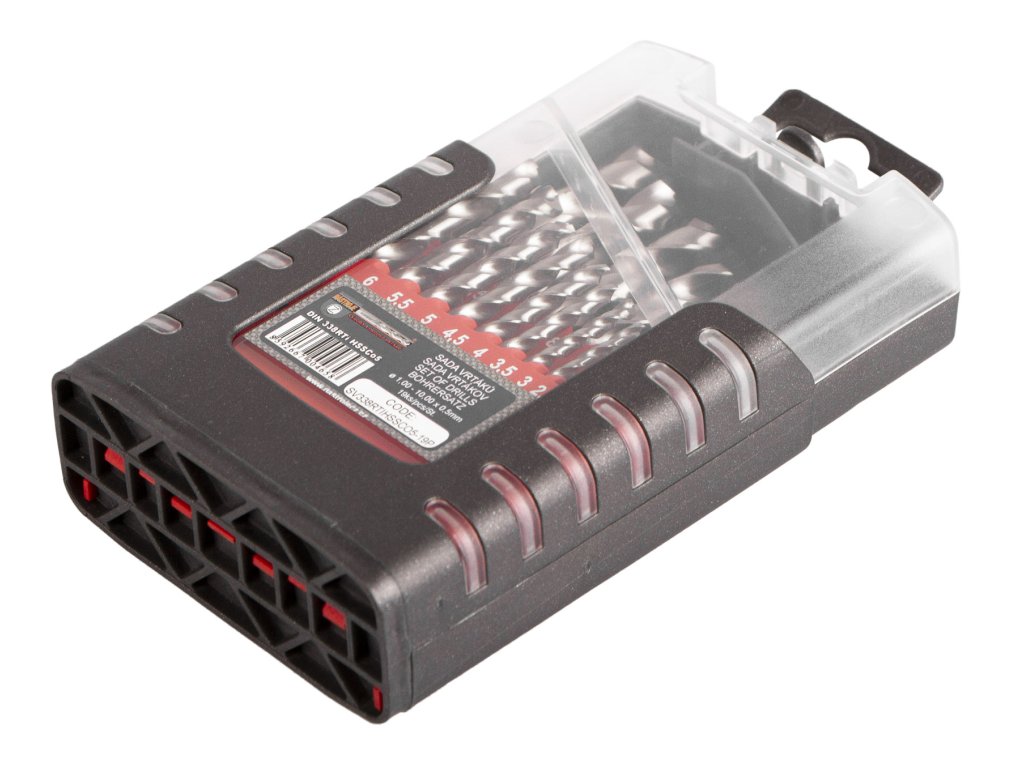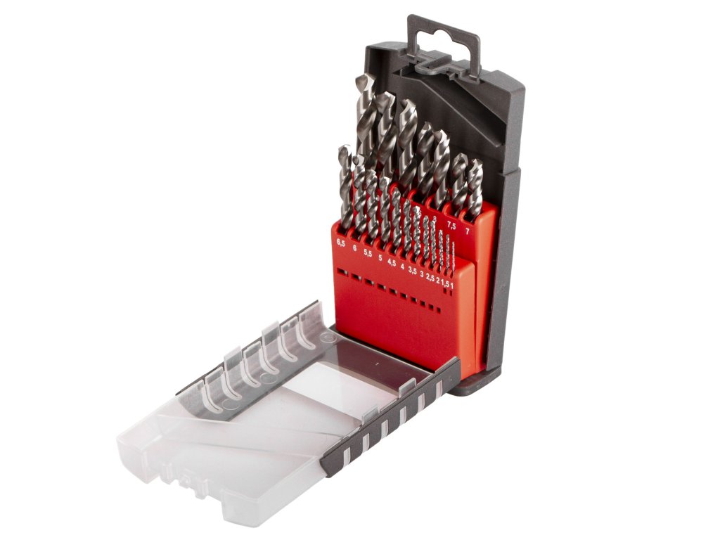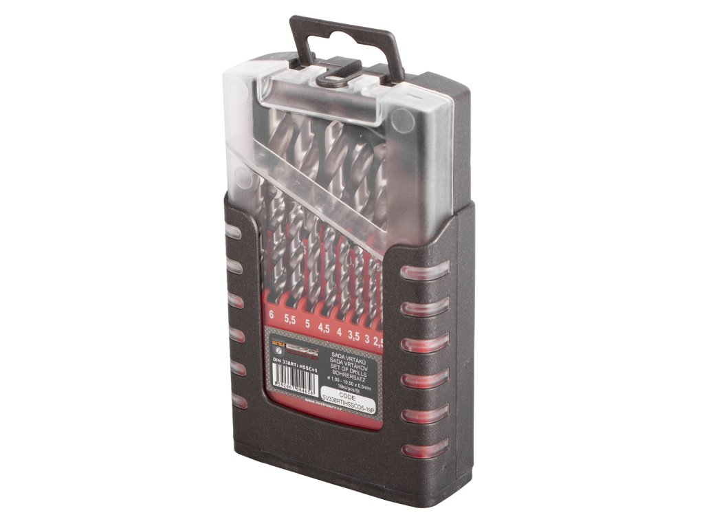 Kvalitní speciální vybrušované vrtáky v sadě 19 ks odstupňovaných po 0,5 mm.