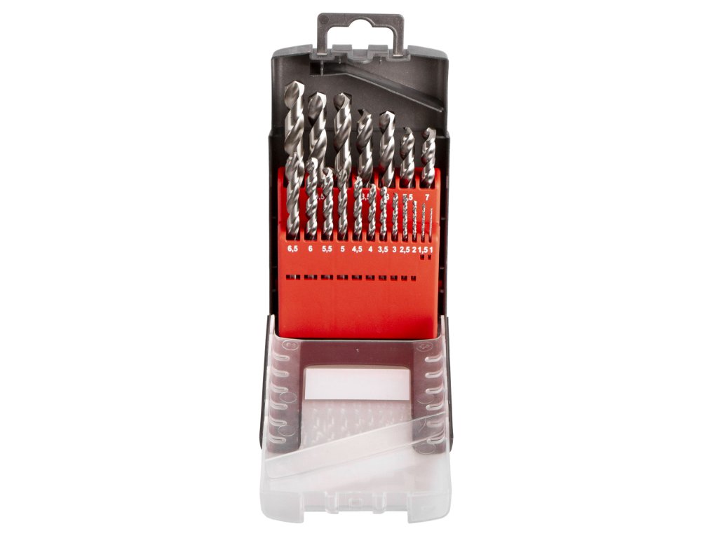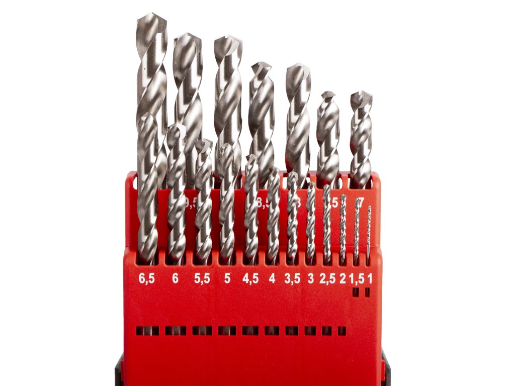 V sadě naleznete vrtáky s průměrem: 1; 1,5; 2; 2,5; 3; 3,5; 5; 4,5; 5; 5,5; 6; 6,5; 7; 7,5; 8; 8,5; 9; 9,5 a 10 mm.