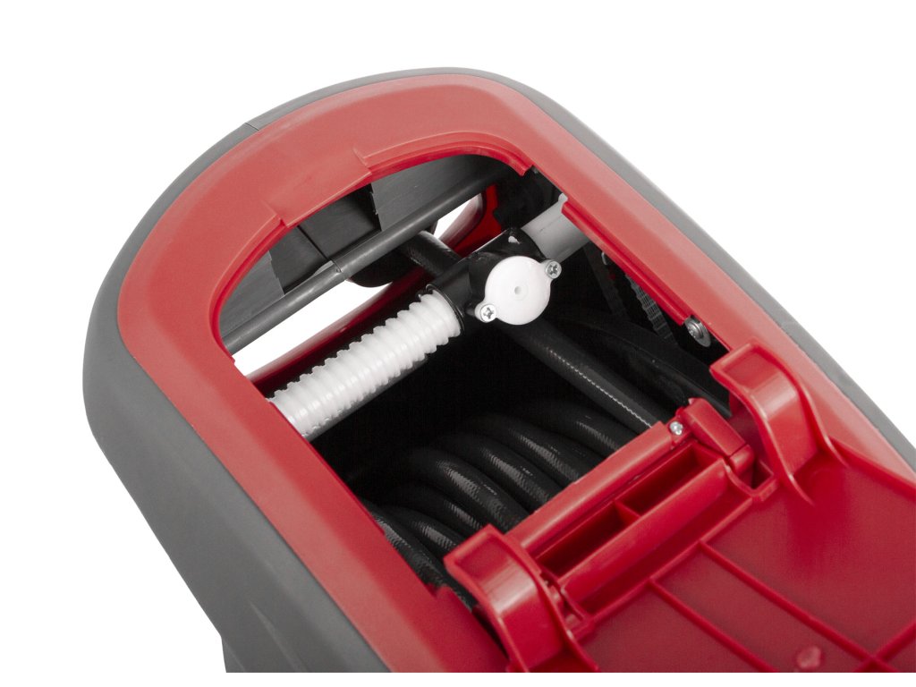 Hadice ukončena rychlospojkou pro připojení příslušenství, např. stříkací pistole. Z bubnu lze hadici snadno vytahovat a v požadovaném vytažení se automaticky aretuje. Popotažením hadice se západka aretace uvolní a hadice se navíjí zpět do bubnu.