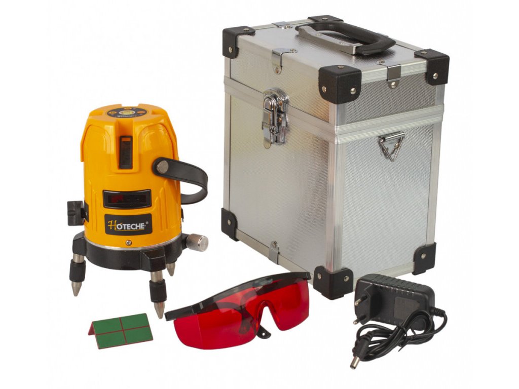 Laser je dodáván v praktickém hliníkovém kufříku společně s příslušenstvím (ochranné brýle, terčík a nabíječka).