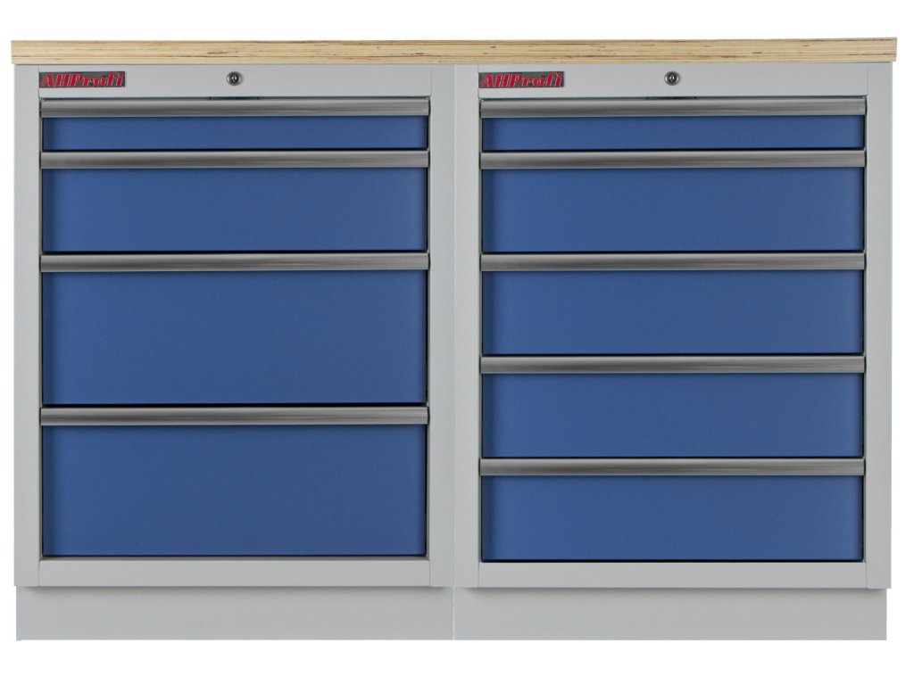 Dílenský nábytek PROFI BLUE s dřevěnou deskou zaujme moderním a profesionálním vzhledem. Kombinace modré RAL 5023 a šedé RAL 7035 barvy se bude vyjímat v každé garáži i dílně.