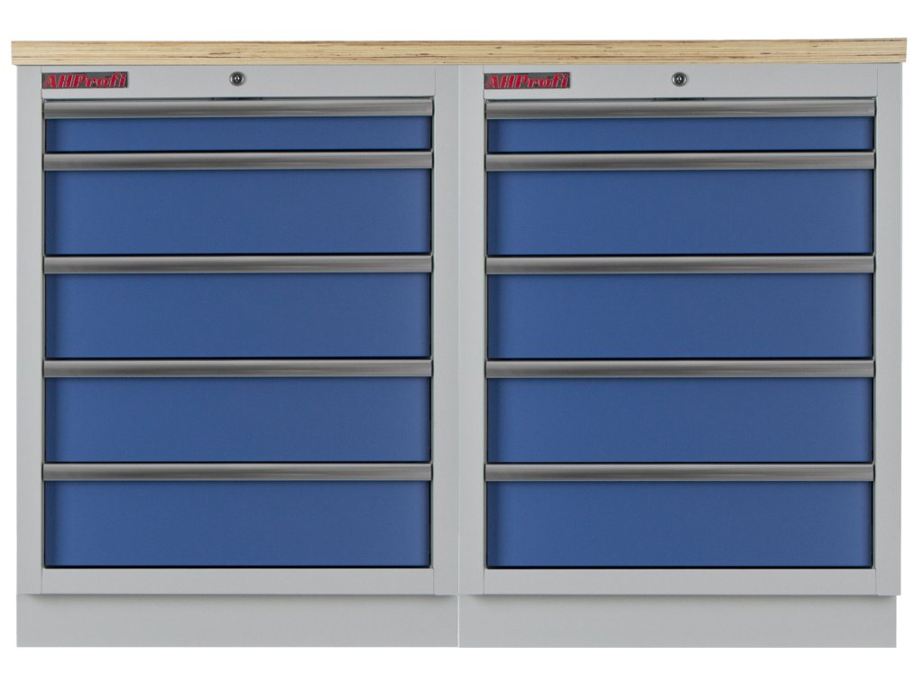 Dílenský nábytek PROFI BLUE s dřevěnou deskou zaujme moderním a profesionálním vzhledem. Kombinace modré RAL 5023 a šedé RAL 7035 barvy se bude vyjímat v každé garáži i dílně.