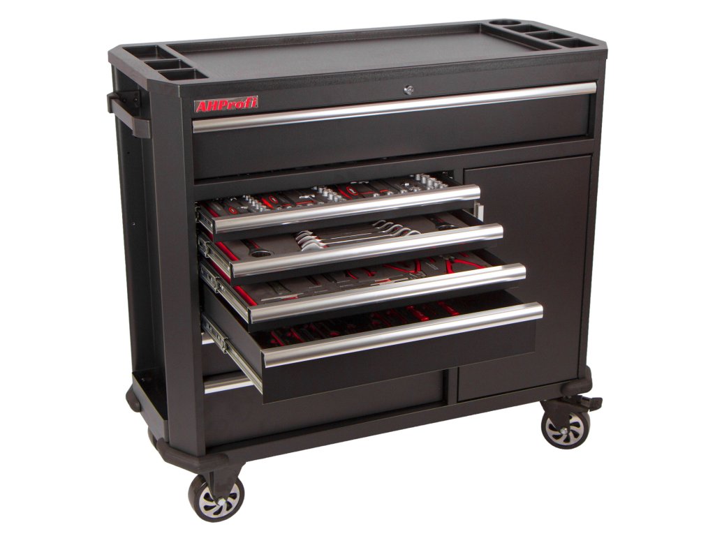 Široký dílenský vozík s nářadím, 130 dílu - AH9407