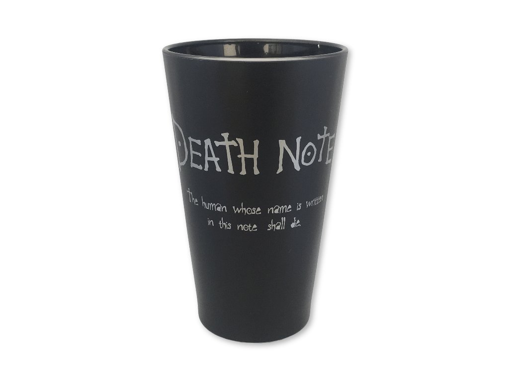 Člověk, jehož jméno je napsáno do zápisníku, zemře. Černá sklenice Death Note, na které je napsáno první a nejslavnější pravidlo Zápisníku smrti. Zároveň ji zdobí detailní, i když trochu znepokojivá ilustrace nejoblíbenějšího shinigamiho Ryuka na vnitřní straně. Ideální dárek pro každého fanouška anime a mangy Death Note. Sklenice je ideální, pokud si chcete vybudovat reputaci ve škole, v kanceláři nebo na novém pracovišti.Doplňkové parametry