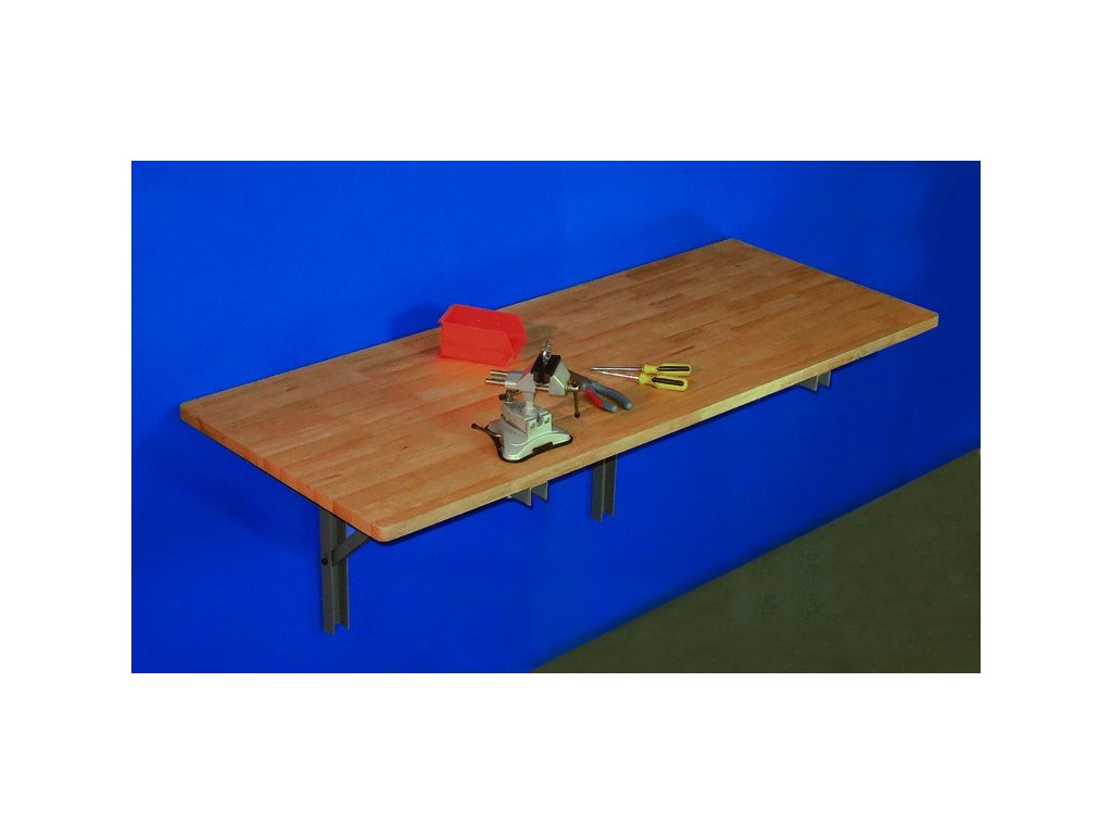 Tento sklopný pracovní stůl představuje ideální řešení pro garáže, domácí dílny nebo zahradní domky, kde je potřeba pevná pracovní plocha s možností úspory místa. Stůl je vybaven pevnými kovovými nohami a sklopným mechanismem, který umožňuje snadné složení ke zdi.