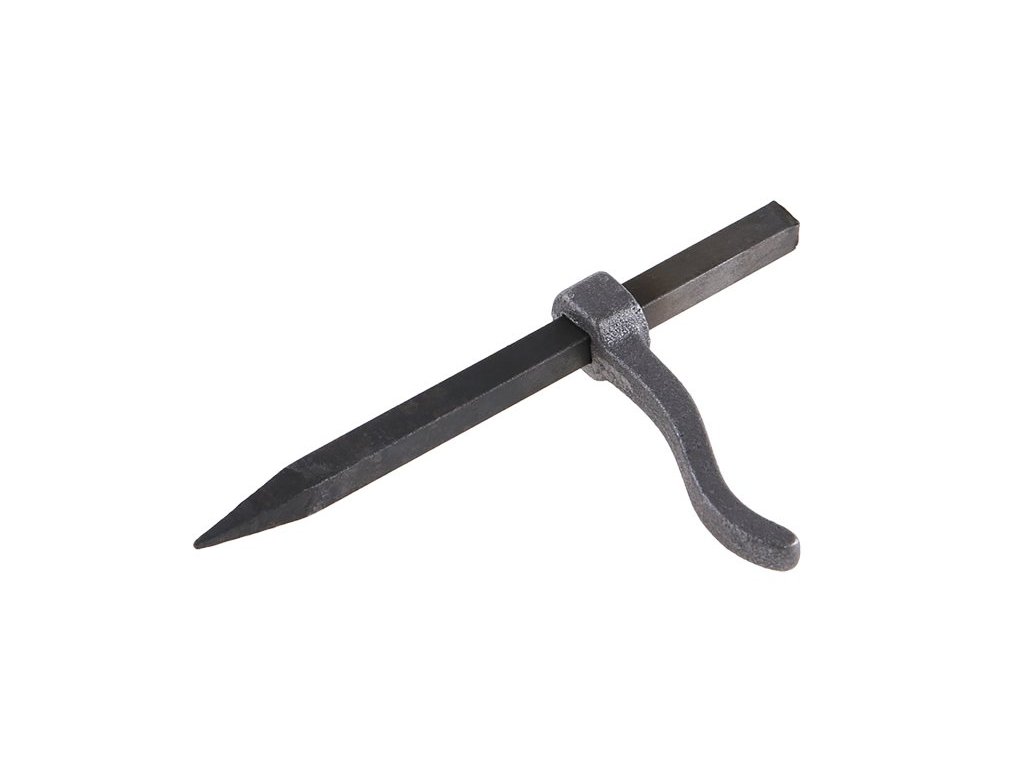 Zednická skoba - kovaná, délka trnu 145 mm, použití : k uchycení desek, příček na kolmých zdech,kulátý dřík umožňuje nastavení plochého ramínka do libovolné pozice.Doplňkové parametry