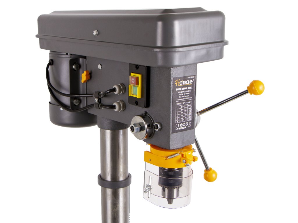 Všestranná sloupová vrtačka od značky Hoteche je určena k vrtání kovů, dřeva nebo plastů pro domácí dílny a garáže.