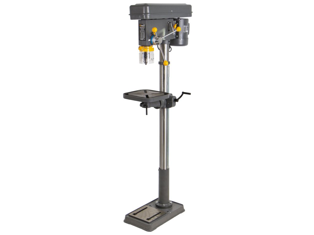 Robustní stabilní konstrukce vyrobena v kombinaci oceli a litiny. Vrtačka lze za pomoci 2 šroubů uchytit k podlaze a tím zvýšíte bezpečnost práce a stabilitu.