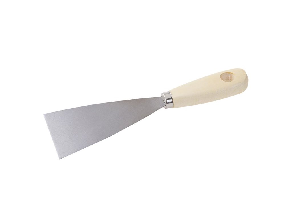 Špachtle ocelová 60 mm s dřevěnou ručkou. Špachtle se používá k nanášení a roztírání stavební sádry, tmelů nebo k očištění a odstranění starých tmelů, maleb či tapet. Díky trojúhelníkovému tvaru se materiál velmi snadno nanáší i odstraňuje.Doplňkové parametry