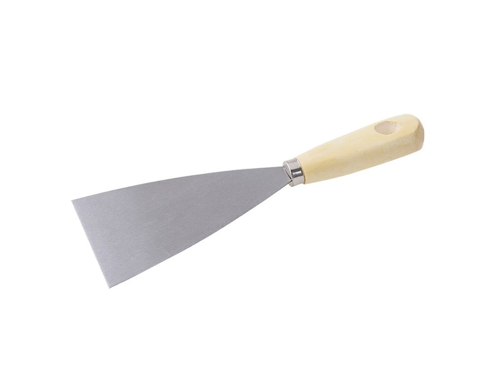 Špachtle ocelová 80 mm s dřevěnou ručkou. Špachtle se používá k nanášení a roztírání stavební sádry, tmelů nebo k očištění a odstranění starých tmelů, maleb či tapet. Díky trojúhelníkovému tvaru se materiál velmi snadno nanáší i odstraňuje.Doplňkové parametry