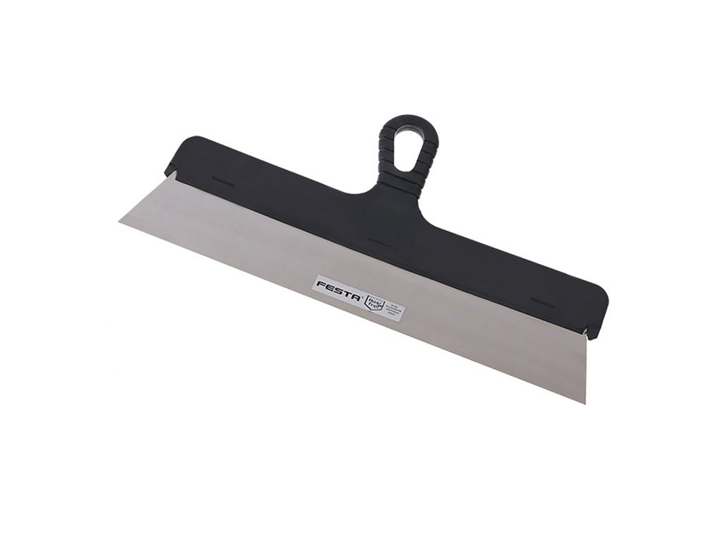 Špachtle fasádní nerezová 400 mm FESTA s plastovou rukojetí. Je užíván ve štukatérství, malířství, natěračství, opravách karosérií nebo při umělecké tvorbě apod. Je vhodná pro roztírání sádry nebo jiných tmelících hmot či k odstraňování staré malby a nátěrů.Doplňkové parametry