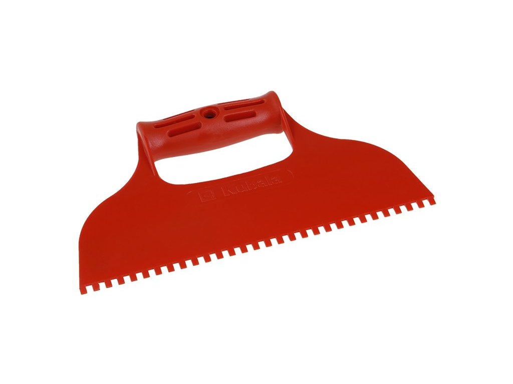 Stěrka plastová, rozměr : 235 mm zuby 4 x 6 mm, ergonomická rukojeť, kvalitní plast, použití : ve štukatérství, malířství, zednictví, je vhodná pro roztírání lepících malt, tam kde je potřeba zajistit souměrnou vrstvu lepidla - hmoty.Doplňkové parametry
