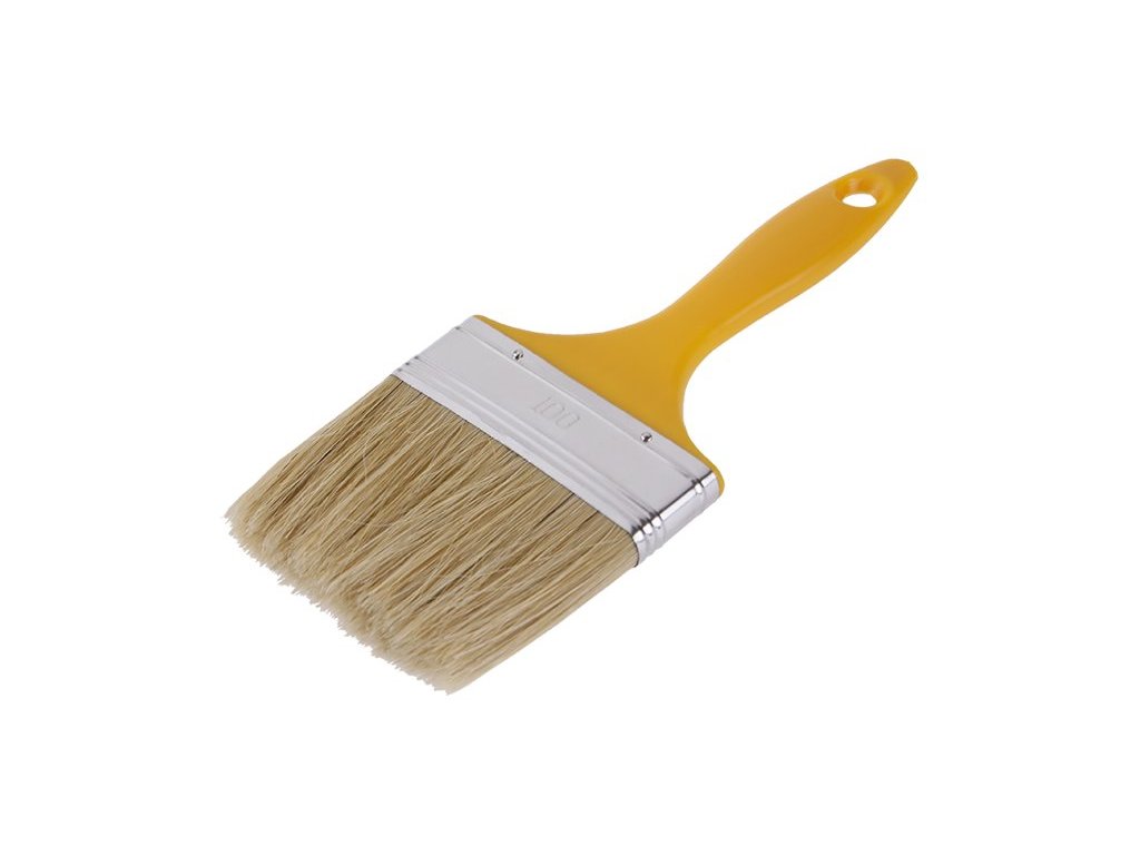 Štětec plochý 100x15x75mm se žlutým plastovým držadlem, světlá štětina - tato štětina se získává z čínských prasat v barevném provedení světlá, černá a šedá. Hmotnost 0,111 kg.Doplňkové parametry