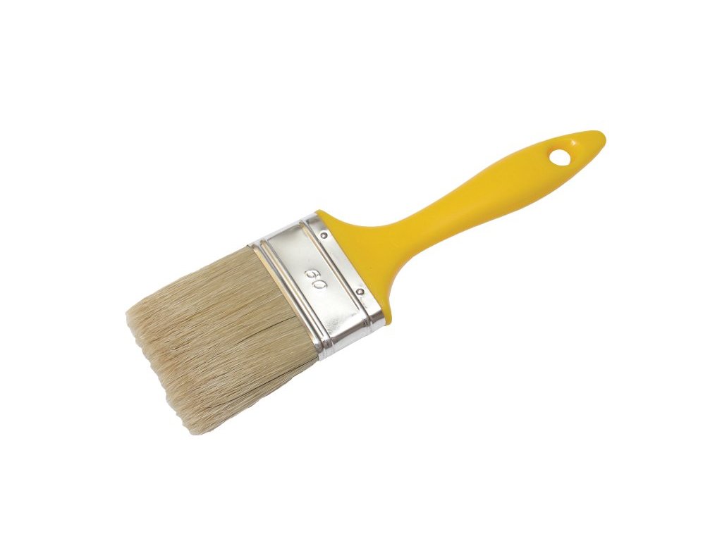 Štětec plochý 20x15x40mm se žlutým plastovým držadlem, světlá štětina - tato štětina se získává z čínských prasat v barevném provedení světlá, černá a šedá. Hmotnost 0,021 kg.Doplňkové parametry