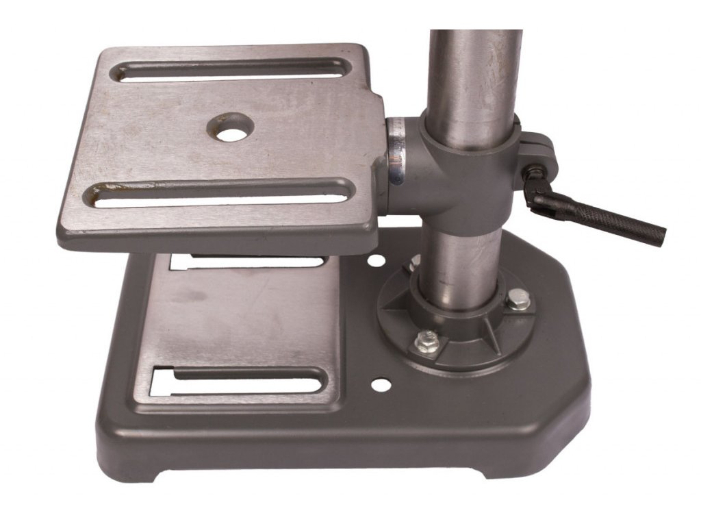 Bitelná stabilní konstrukce ze slitiny železa jde za pomoci 2 šroubů uchytit k pracovnímu stolu a tím zvýšíte bezpečnost práce a stabilitě stojanové vrtačky.