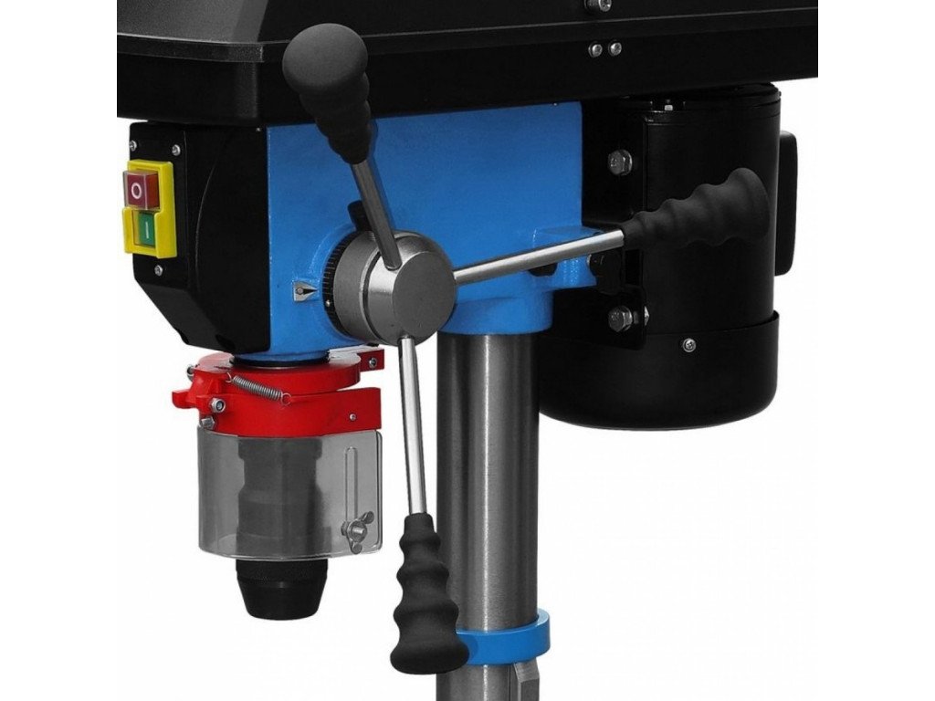 Spolehlivá stolní stojanová vrtačka, určená k vrtání kovů, dřeva nebo plastů v podmínkách domácích/servisních dílen.