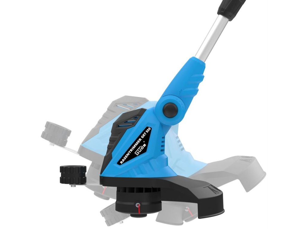 - teleskopická vodicí tyč (max. vyložení: 230 mm; včetně možného přetočení rukojeti o 180° pro svislé dosekání okrajů trávníku podél obrubníků, palisád, bazénových lemů atp.).