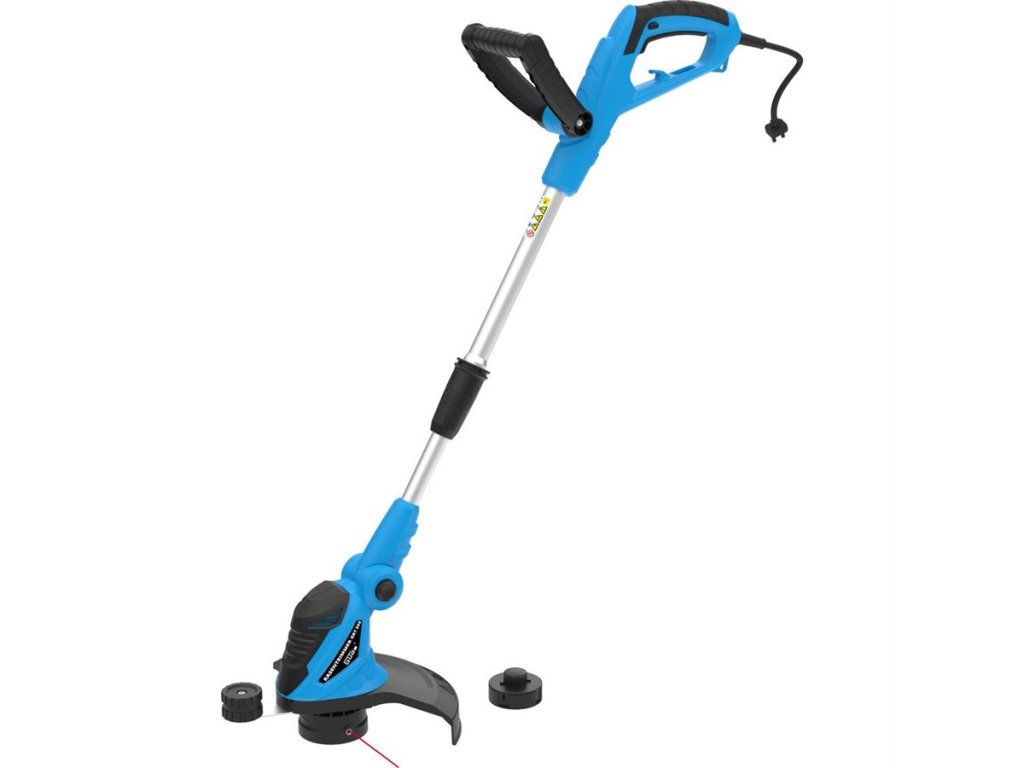 Výkonná elektrická strunová sekačka, určená k finálním úpravám zahradních trávníků.