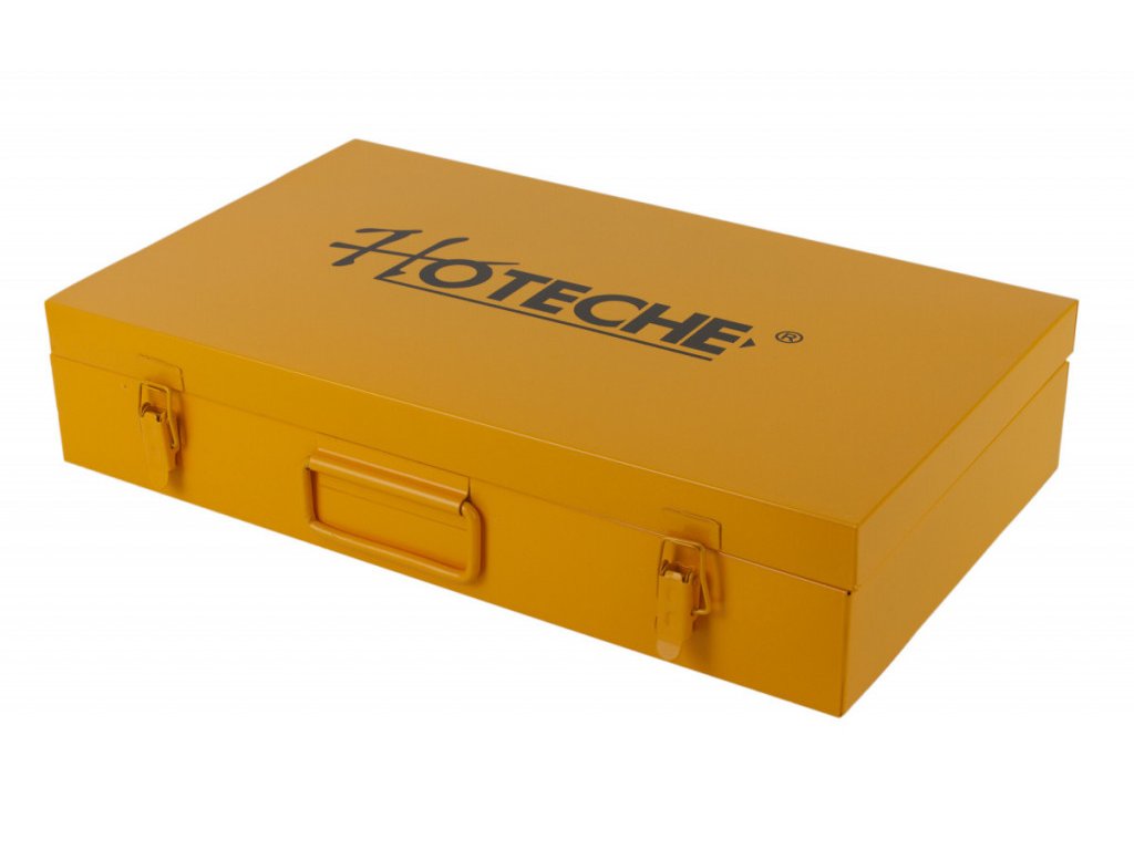 Praktická instalatérská sada v plechovém kufříku obsahuje polyfúzní svářečku o výkonu 1500W vybavenou termoregulátorem, 6 nástavců Ø 20, 25, 32, 40, 50 a 63 mm, stojan, nůžky na plastové trubky, pracovní rukavice a další příslušenství.