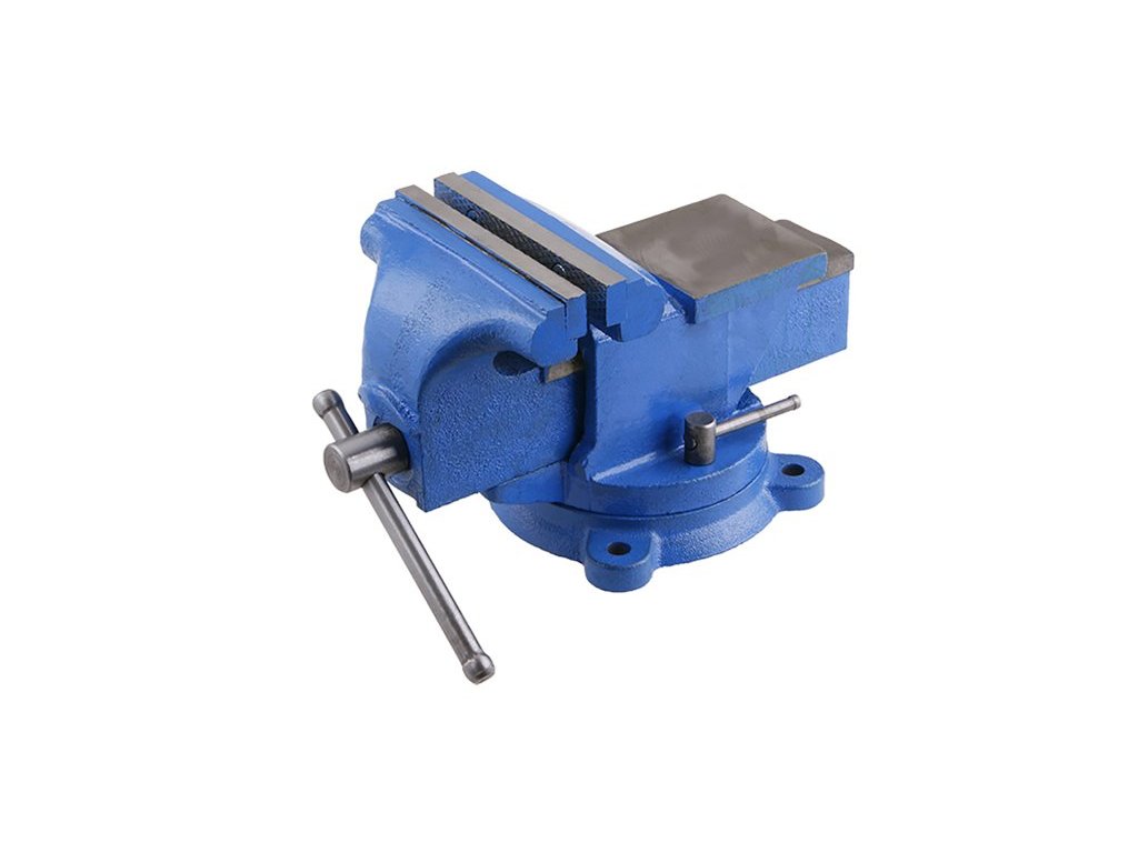 Masivní svěrák s kovadlinkou z litiny, tvrzené čelisti, otáčení svěráku pomocí otočného talíře, tělo a pohyblivé rameno odlité každé z jednoho kusu zaručuje, velkou odolnost a pevnost, váha:7500g, Max. rozevření: 100mm.Doplňkové parametry