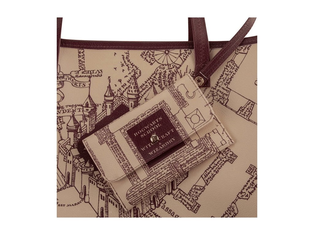 Prostorná taška s pobertovým plánkem a malou připínací kapsičkou na drobnosti musí mít všechny správné fanynky filmů a příběhů o Harrym Potterovi! Taška má velkou hlavní kapsu s menší vnitřní kapsičkou například na klíče, peněženku nebo mobil. Vnější malá kapsička se zapínáním na magnet se hodí vždy, když potřebuje mít důležité věci hned po ruce!Doplňkové parametry