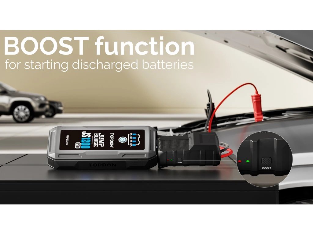 Je vybaven funkcí Boost, která dokáže nastartovat vybitou nebo poškozenou baterii.