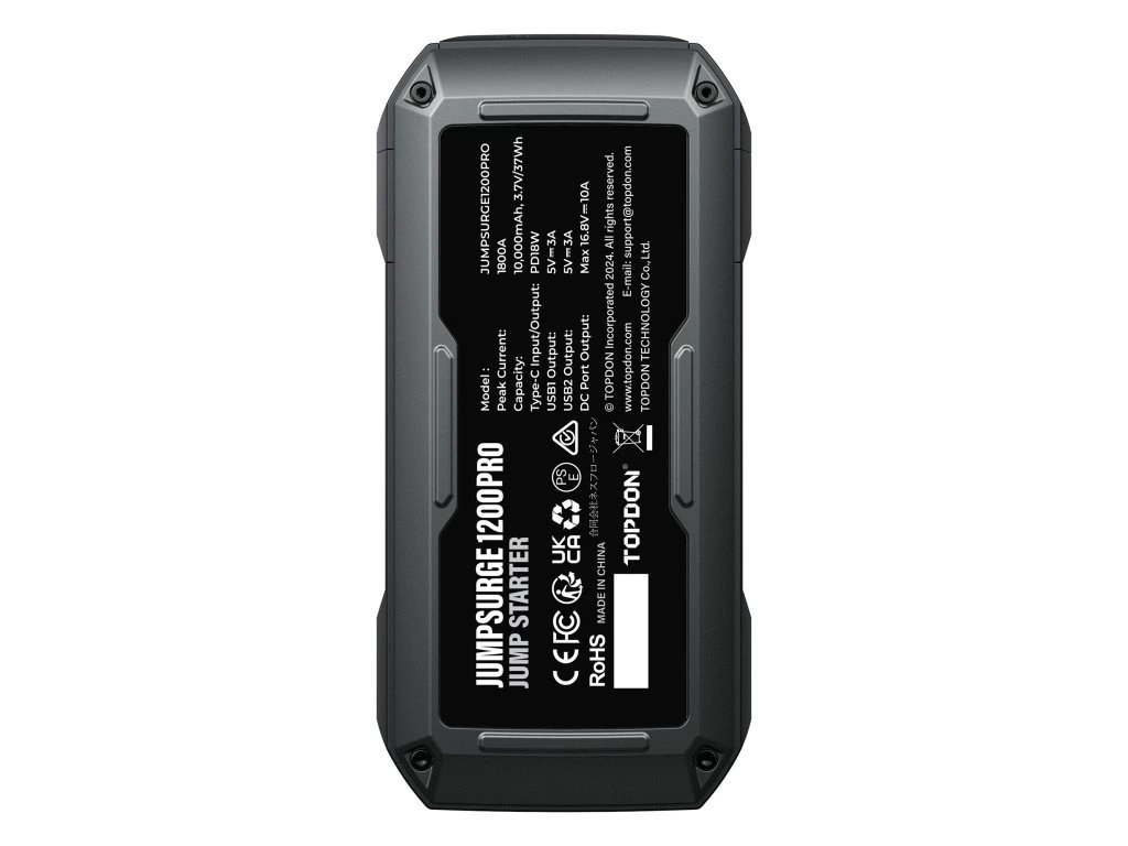 Maximálně spolehlivý a výkonný car jump startér JumpSurge 1200 PRO s kapacitou 3,7V, 10 000mAh (37Wh) a špičkovým startovacím proudem až 1800A je ideální zařízení, které vám poslouží jako startovací zdroj pro vaše vozidla, lodě, motocykly, skútry. JumpSurge 1200 PRO vám umožní oživit baterii a nikdy nezůstat na cestách bez pomoci!