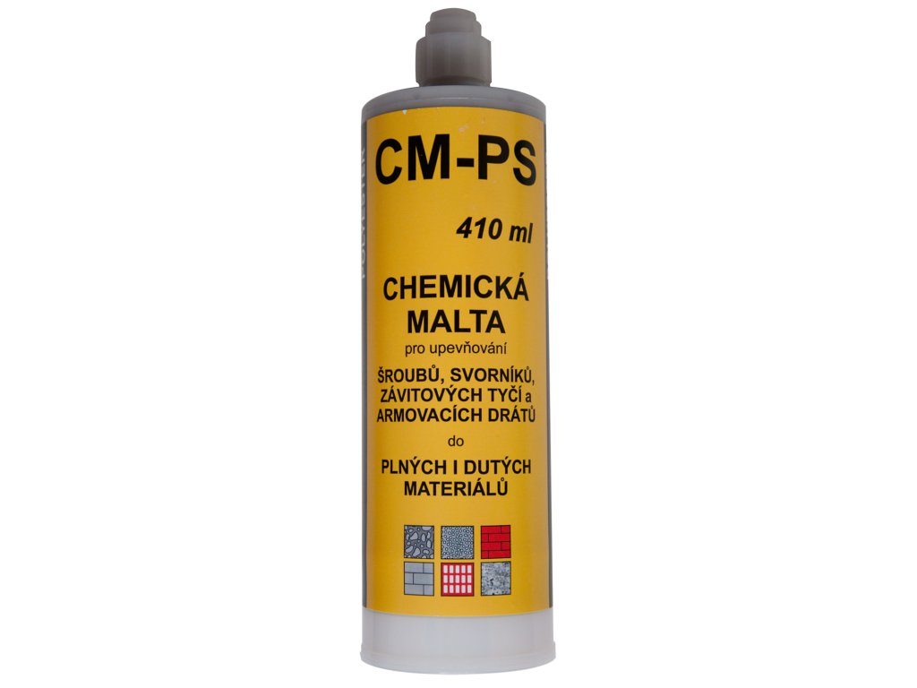 Chemická malta se styrenem (polyester) pro kotvení dynamicky namáhaných konstrukcí, stavebních dílů, technologických zařízení či lešení do betonu, plných cihel a dutých bloků.Doplňkové parametry