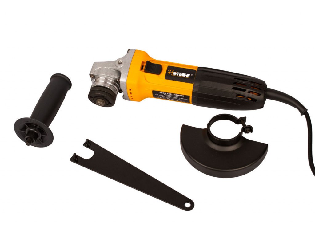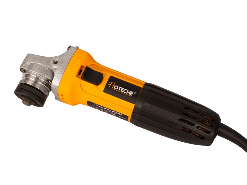 Kompaktní jednoruká elektrická úhlová bruska Hoteche 115 mm s výkonem 750W, díky kterému dosahuje až 11.000 otáček za min-1 naprázdno. Řezat, brousit nebo kartáčovat můžete pomocí kotoučů o průměru 115 mm, které upnete na vřeteno se závitem M14.