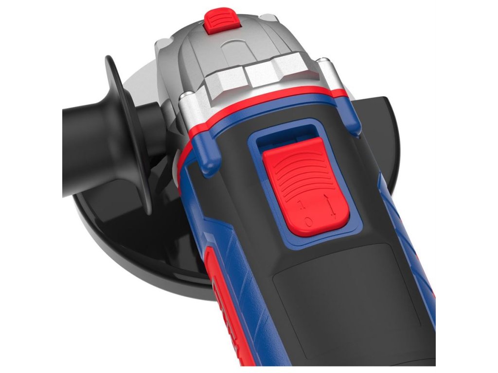 Praktická úhlová bruska 125 mm, určená k dělení, hrubování nebo kartáčování kovových/kamenných/keramických materiálů v podmínkách domácích dílen, chat, chalup apod.