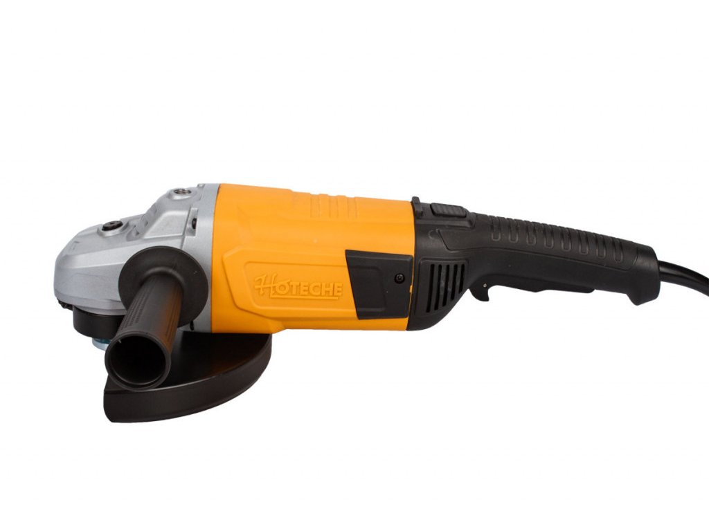 Velmi výkonná úhlová bruska Hoteche 230 mm s výkonem 2400W, díky kterému dosahuje až 6500 otáček za min-1 naprázdno. Řezat, brousit nebo kartáčovat můžete pomocí kotoučů o průměru 230 mm, které upnete na vřeteno se závitem M14.